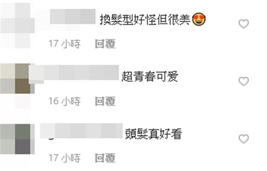 闪亮亮一贴出照片,立刻引来不少粉丝留言表示,换发型好怪但很美、突然认不出来啦、换了发型更年轻了浏海超可爱、发色和发型都很适合!、换了发型感觉完全不一样耶。