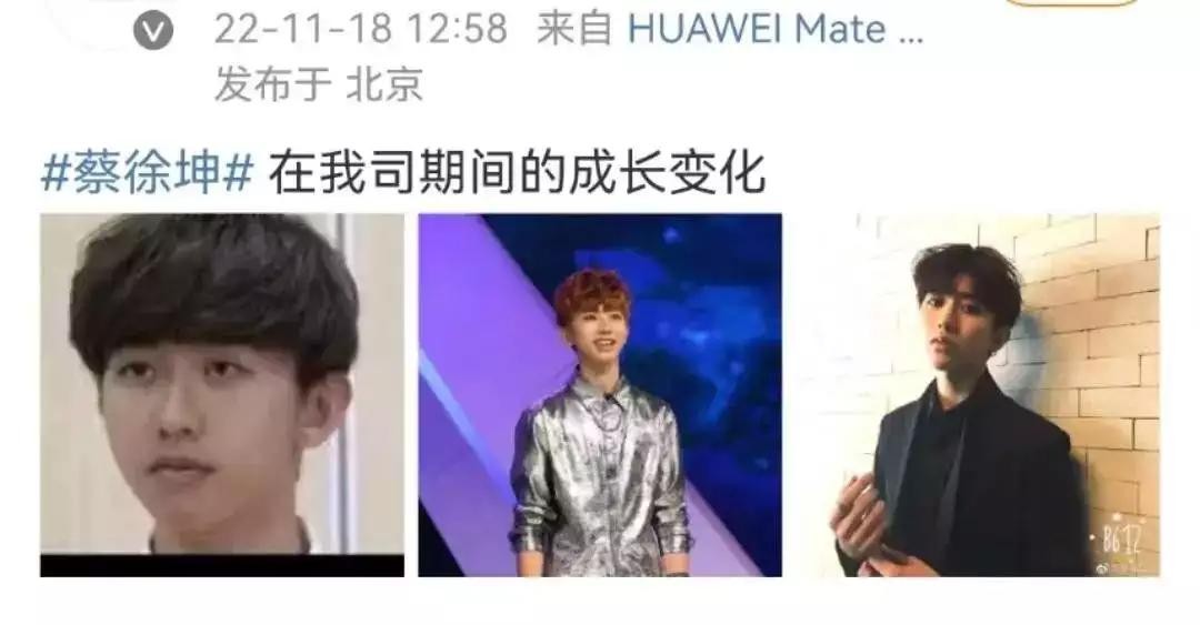 11月18日,该公司就晒出了蔡徐坤的成长变化,疑似暗指其整容。
