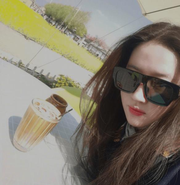 在这张照片中刘亦菲旁边摆着一杯咖啡,轻松悠闲的自拍一张。云南的天气实在是太好了,刘亦菲戴着墨镜,在太阳伞下晒太阳。还晒出了一张有小鸭子的照片,看来刘亦菲也很喜欢云南的生活和景色呀。