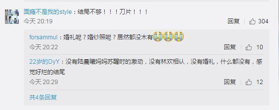 就连胡歌在脸书上发布陆晨曦和庄恕婚讯的情节也被剪掉了。不能因为陆晨曦一句“不办婚礼”,导演欠了观众一个婚礼。怪不得网友纷纷要给编剧寄刀片呢