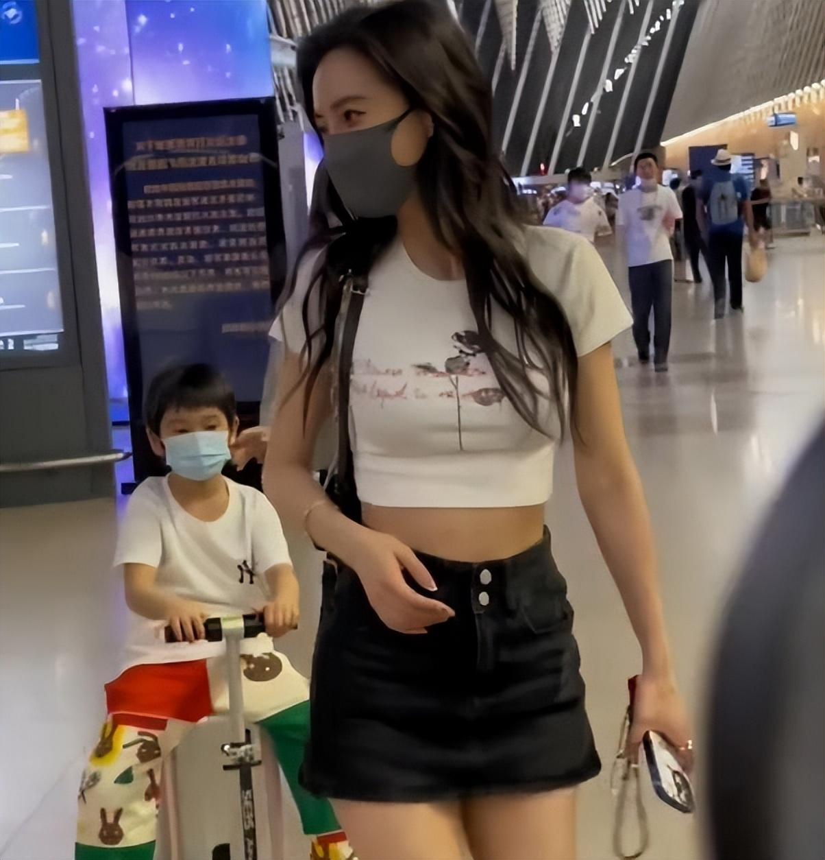 而此次机场偶遇,Angelababy身穿黑色短裙,白色上衣,打扮很潮流,露肚脐的造型很显年轻。