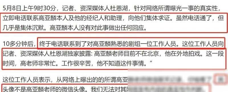 媒体记者们也不是吃素的,他们试图通过电话联系高亚麟的经纪人和助理,结果对方一接电话,就开启了“静音模式”,啥也不说。据小道消息,高亚麟现在还在外地忙着拍摄工作,对于这些铺天盖地的指控,他似乎还一知半解,有点懵圈。高亚麟团队的工作人员在回应这些爆料时,说话模棱两可,就像是在打太极,让人摸不着头脑。