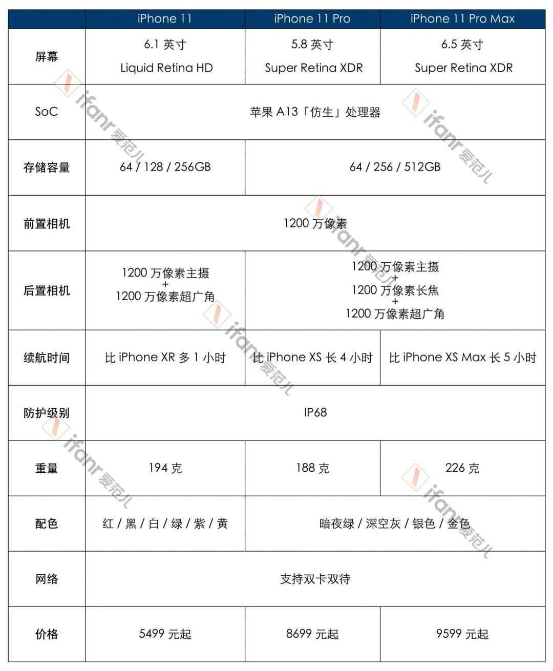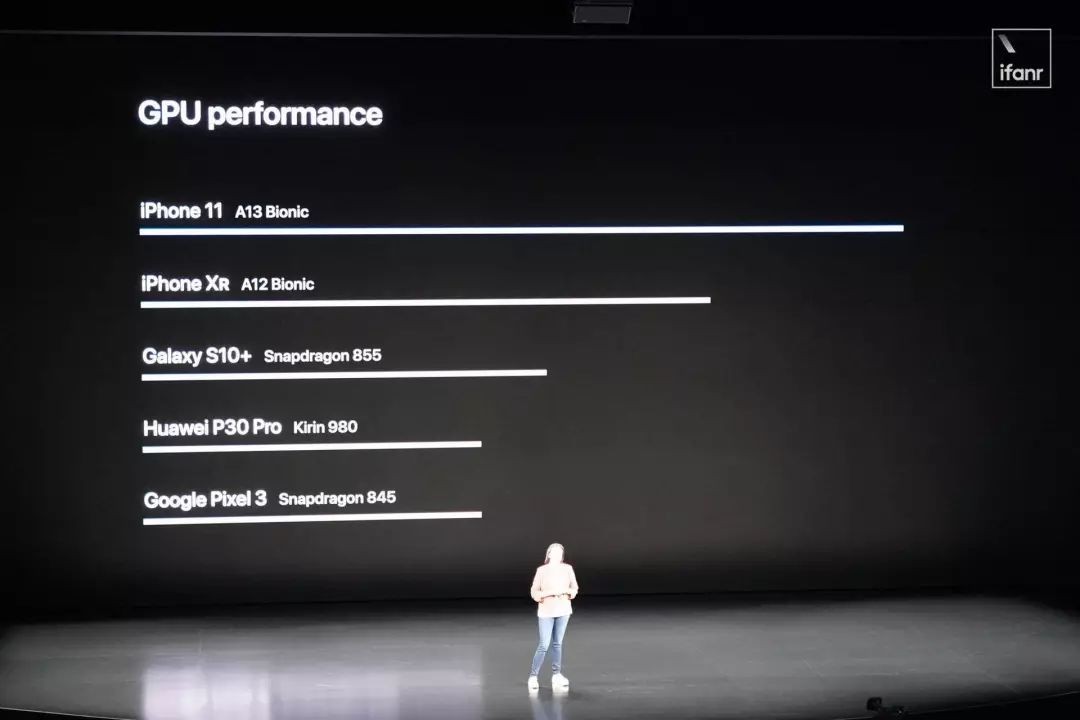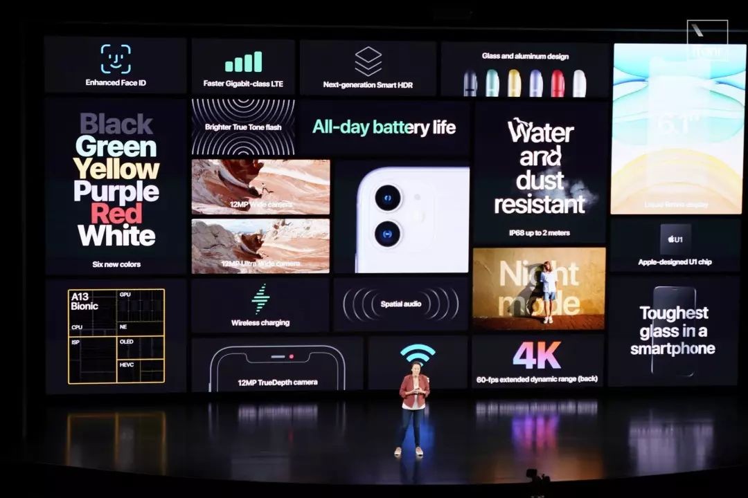 由于搭载了全新的A13芯片,续航比iPhone XR多出两个小时。价格为699美元。