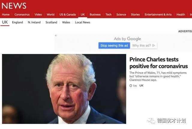 没想到这才一周的时间,就在刚刚3月25日,英国《卫报》公告:英国王储查尔斯王子,已被确诊,新冠病毒检测呈阳性。