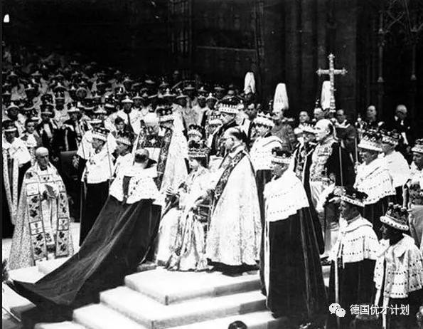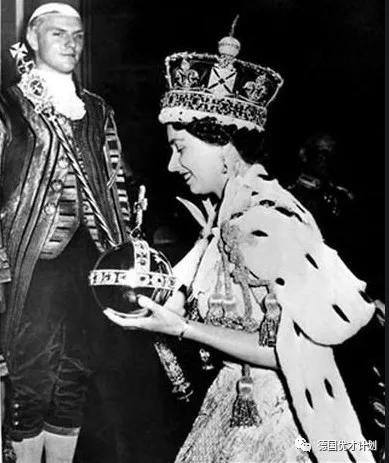 1953年6月2日,英国女王伊丽莎白二世加冕仪式戴着皇冠,手拿象征著权威的权杖