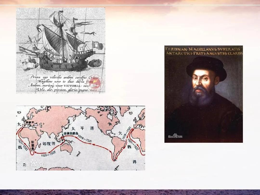 1522年9月6日,一条破烂不堪的船驶入西班牙的巴拉麦达港,从般上走出18个衣衫褴褛、面黄肌瘦的人来。这些流浪汉似的人却像凯旋的英雄,在船上鸣放礼炮。人们不约而同地聚集在码头上,对他们的奇怪举动议论纷纷。几个眼尖的人认出,这是3年前从这里出发,去进行环球探险的麦哲伦船队中的一艘船。很快,这一惊人的消息就传遍欧洲。