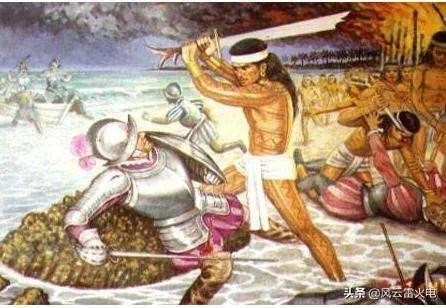 而土人射来的包有铁尖的竹矛、在火里烤过的尖桩,却使麦哲伦的士兵难以抵挡。