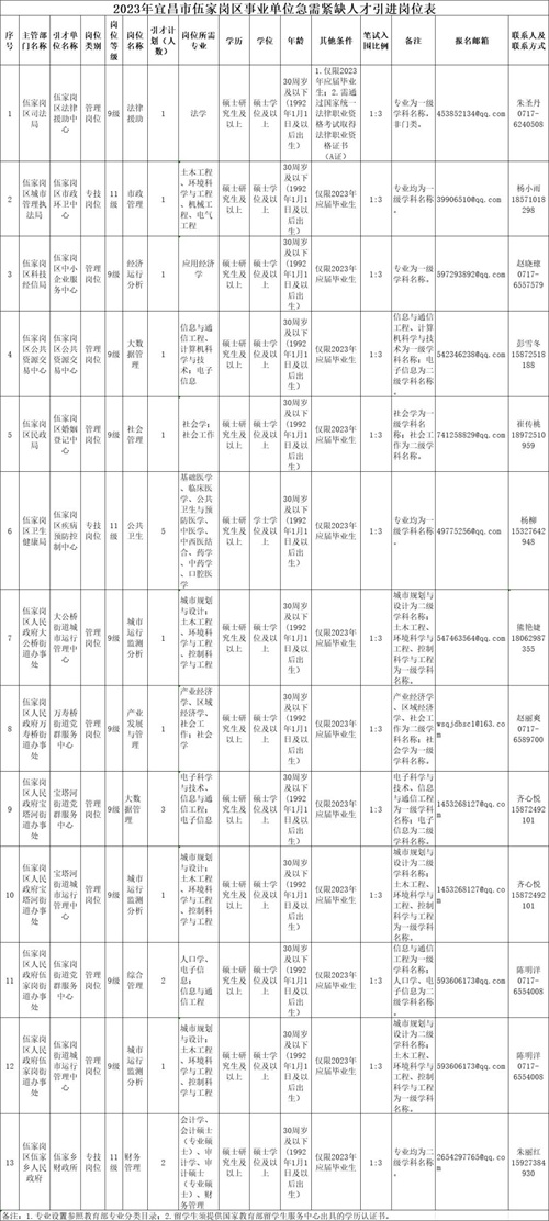 6.每个岗位的具体资格条件详见《伍家岗区2023年专项公开招聘中小学及幼儿园教师岗位表》。
