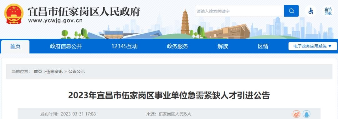 根据《关于印发优化人才生态加快人才集聚有关文件的通知》(宜办发〔2021〕21号)和《伍家岗区急需紧缺人才引进工作暂行办法的通知》(宜伍人才发〔2022〕1号)等相关文件精神,宜昌市伍家岗区将赴省内部分重点院校开展事业单位急需紧缺人才引进工作,现将有关事项公告如下: