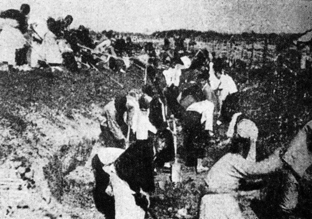 许光在新县任职期间,勤勤恳恳,克服一切困难,带领人民群众修路架线,抢险救灾。