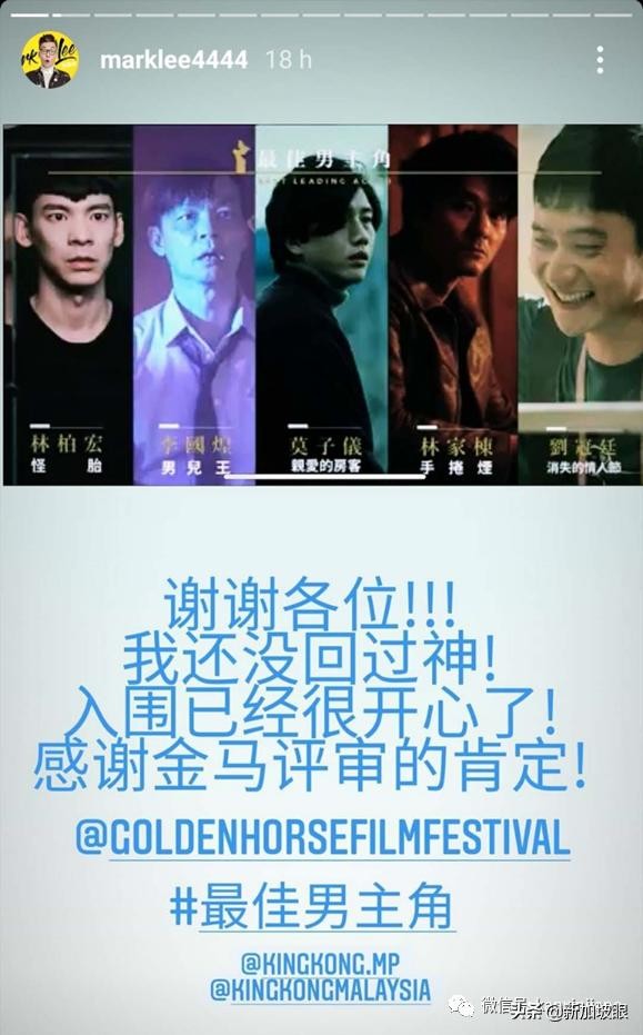 时隔13年,新加坡艺人再次冲刺金马奖,绝对是新加坡电影界的一大喜事!李国煌昨午(9月30日)在接到消息后在个人Instagram上发帖感谢大家的祝福。