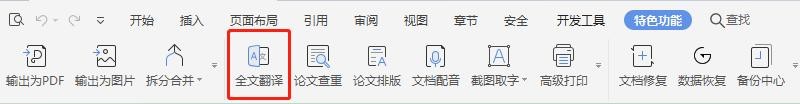 接下来还可以使用WPS Office来进行翻译,同样也是打开这个软件,然后点击【特色功能】-【全屏翻译】,最后就可以将文档中的内容翻译出来了。