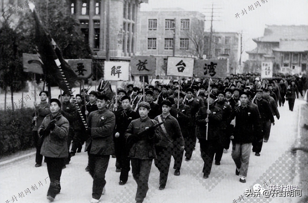 1959年,随时要解放台湾,校民兵师进行武装游行