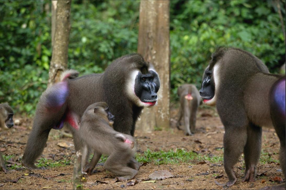 正因为它们的胸脯能释放出不同的气味,因此鬼狒们之间可以通过这些气味来辨别对方,从而进行交流。除此之外,它们也会通过声音、毛发色彩以及触觉的方式来进行交流。