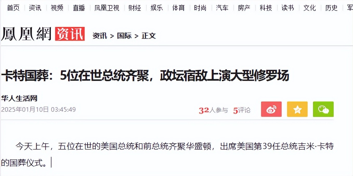 华人生活网2025年1月10日,卡特国葬:5位在世总统齐聚,政坛宿敌上演大型修罗场