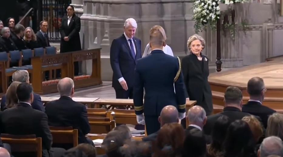 出席葬礼的还有布林顿和他的妻子希拉里,希拉里依旧是非常傲慢的姿态,颇有一种不把人放在眼中的感觉。