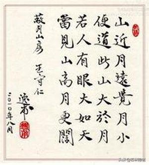 写作背景:十岁时,王阳明父亲高中状元,王阳明随父赴京,路过金山寺时,他父亲与朋友聚会,在酒宴上有人提议做诗咏金山寺,大家还在苦思冥想,王阳明已先一步完成:“金山一点大如拳,打破维扬水底天。醉倚妙高台上月,玉萧吹彻洞龙眠。”四座无不惊叹,又让他做一首赋蔽月山房诗,王阳明随口诵出:“山近月远觉月小,便道此山大于月。若人有眼大如天,还见山小月更阔。”这意思是看事物的角度不同,看出来的东西也不一样 。从这两首诗可以看王阳明是天才异志少年,他不仅思维敏捷,更重要的是视角、气势和思路的不同寻常。这两首诗至今也是传世佳作。至于说王阳明有异志,更是大家的共识。十一岁在京师念书时他问塾师“何谓第一等事?”老师说“只有读书获取科举名第”,他当时说:“第一等事恐怕不是读书登第,应该是读书学做圣贤”。这个回答非同凡响,那个时代即便是学有所成的读书人,立志做圣贤者也是少之又少,须知那圣贤岂是凡人可做的?