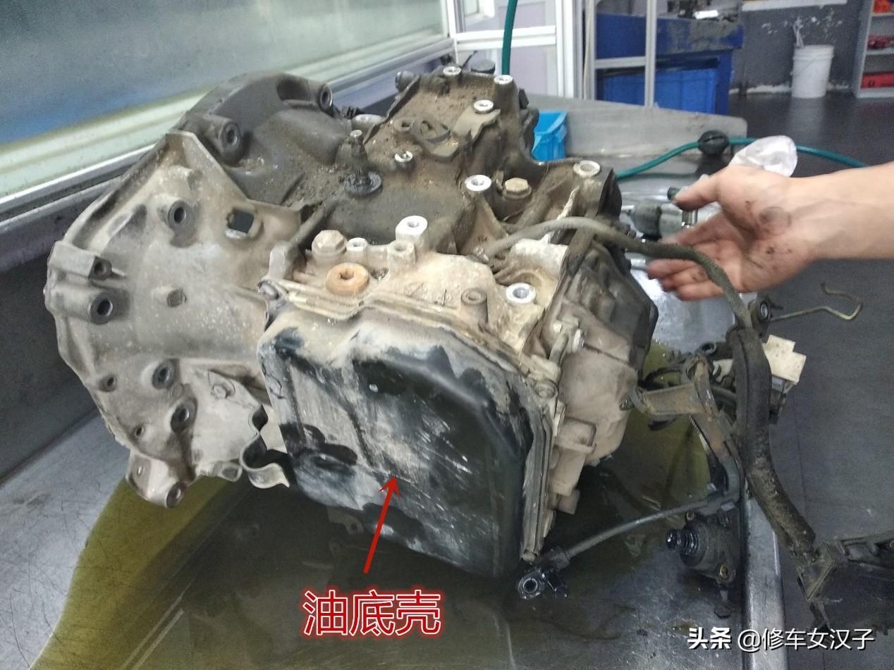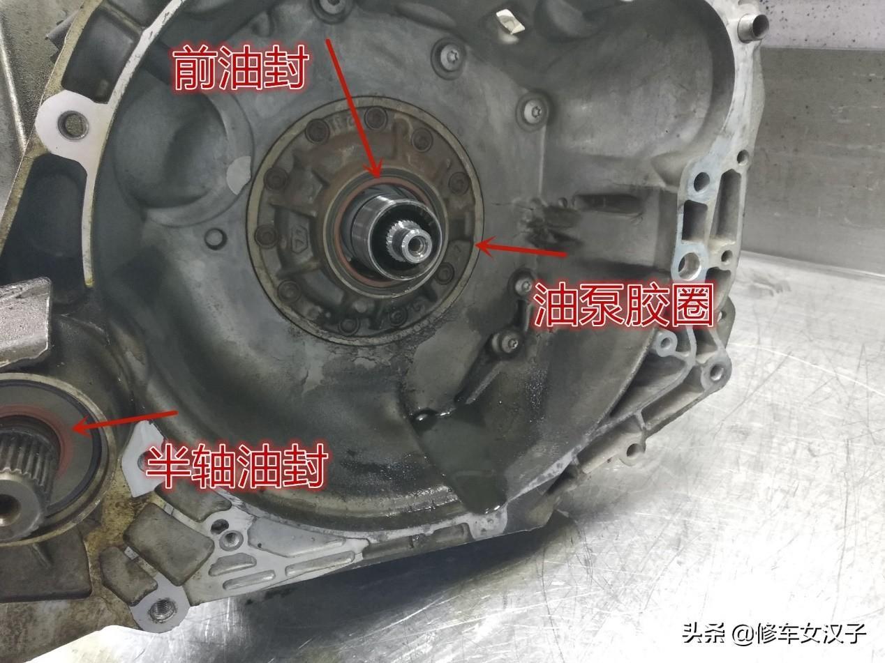 常见的几处漏油点,包括发动机漏油,变速箱在车上的时候很难分辨出到底是哪一处漏油,从下面看油乎乎的一大片,需要有经验的师傅来判断。