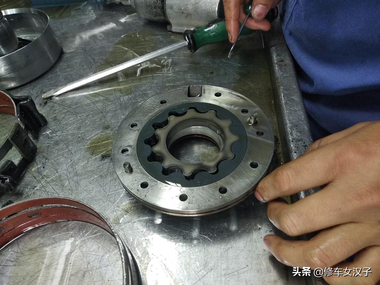 制动器的作用就是固定行星齿轮机构中的元件,防止其转动,控制变速器的速比变化。制动器有片式和带式两种形式,老款的很多是采用制动带形式。