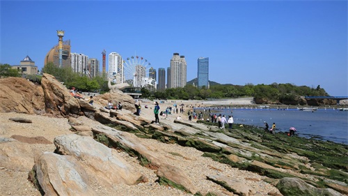 海水浴场沙滩长800余米,海滩低缓,水深适度。陆域园地,苍松翠柏,树绿花红,铺就精致的小路极具历史感,随处可见的休闲椅让人感受到大都市另一种生活节奏和人文关爱。因为这里位于市区,因此,一年四季少不了游人光顾,尤其是夏季三伏天,洗海澡的人,常被形容为像“下饺子”似的。
