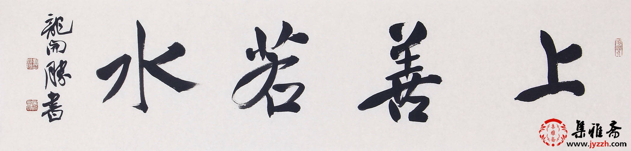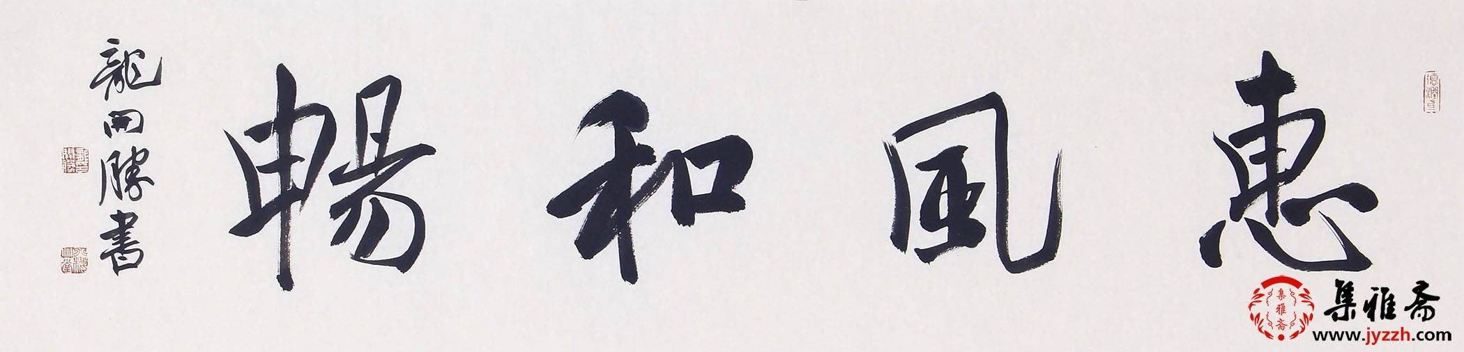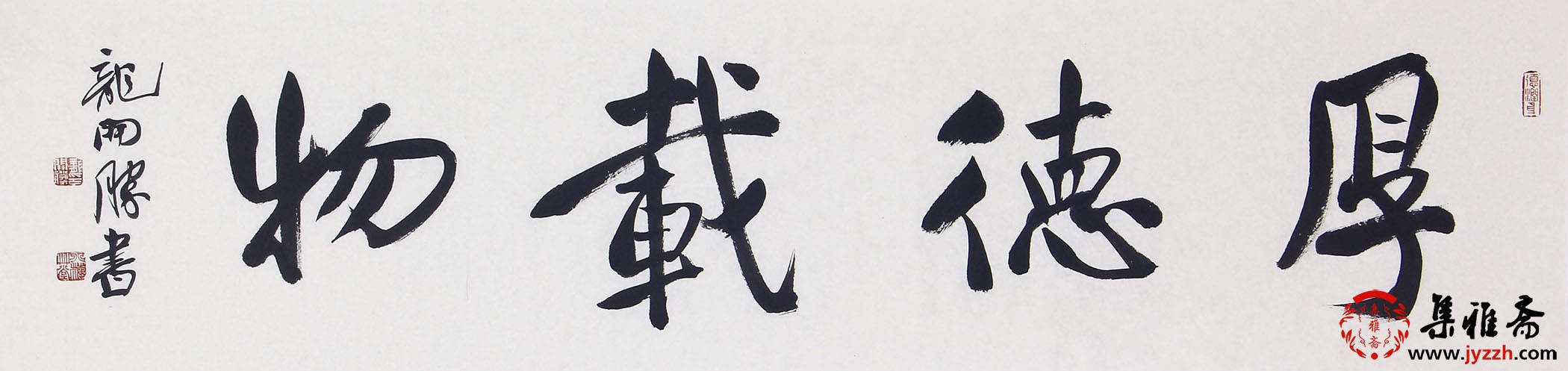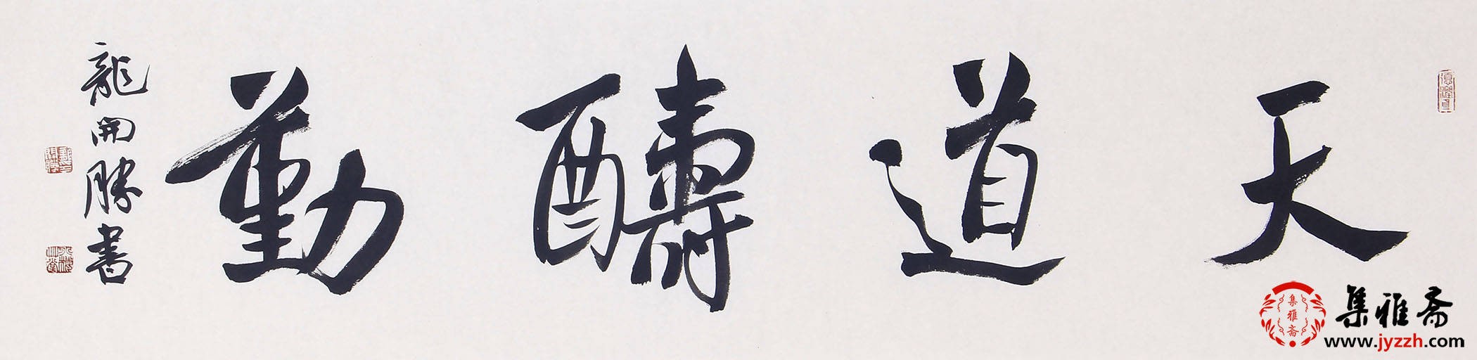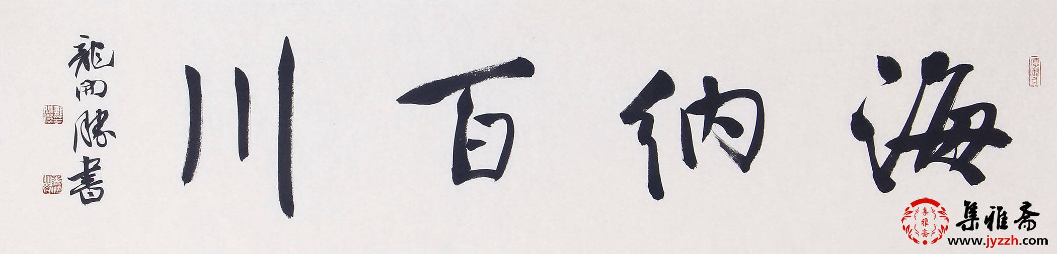 龙开胜的行书《宠辱不惊》,运笔流畅且富有节奏感,以中锋为主,侧锋为辅,使线条刚柔相济,兼具劲健与灵动。字的结体宽博舒展,笔画之间疏密得当,既相互呼应又各自独立,展现出一种和谐的秩序感。整体布局疏密有致,行气贯通,体现出他对行书章法精妙的把控,彰显出深厚的书法功底。
