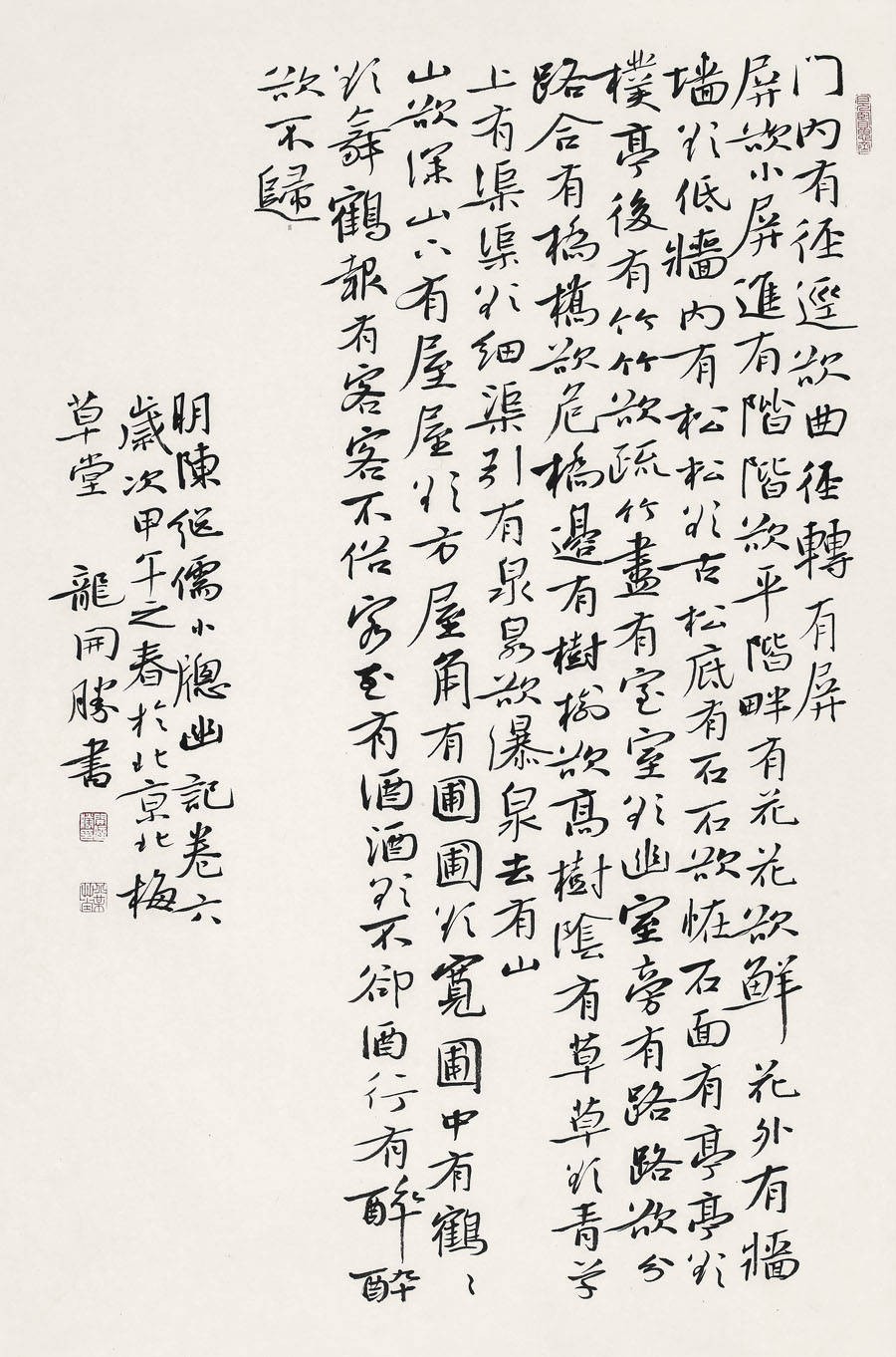 二、龙开胜行书《宠辱不惊》:笔势流动中的淡然心境