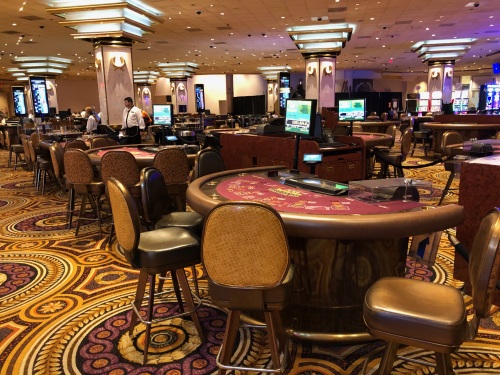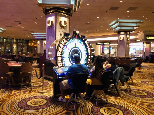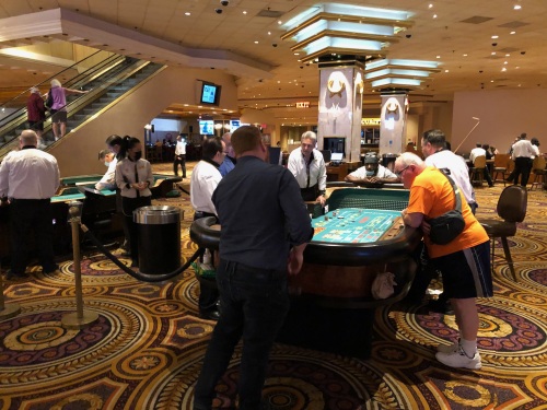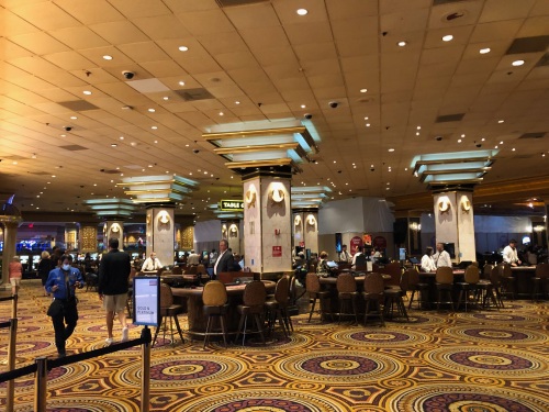 牌桌的区域也是见不到游客,发牌人远多过游客,大家都是大眼瞪小眼地呆站在那里。