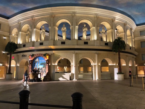 Caesars在海边建有一大片高档购物区,那里大门紧闭楼顶和墙上的广告牌都是空的,门口的保安说疫情以后购物中心早就关门了。