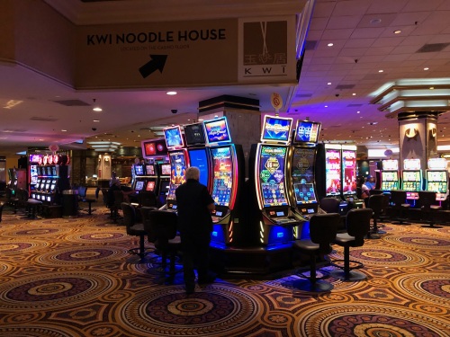 成片的老虎机前空无一人,只有极个别的机位上有一两个人。