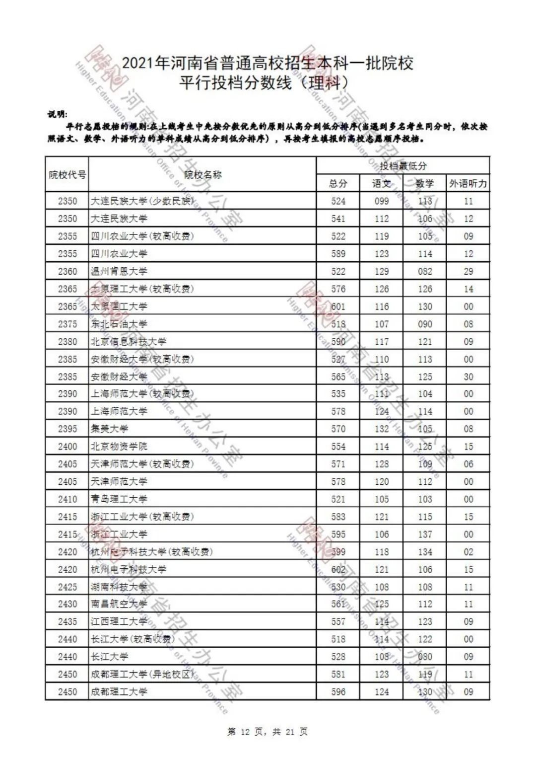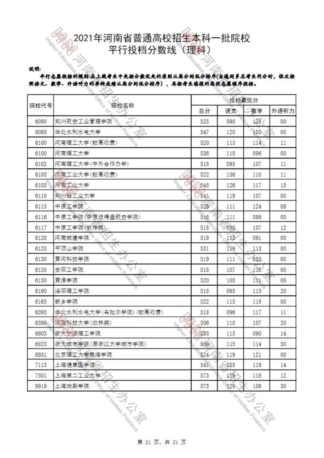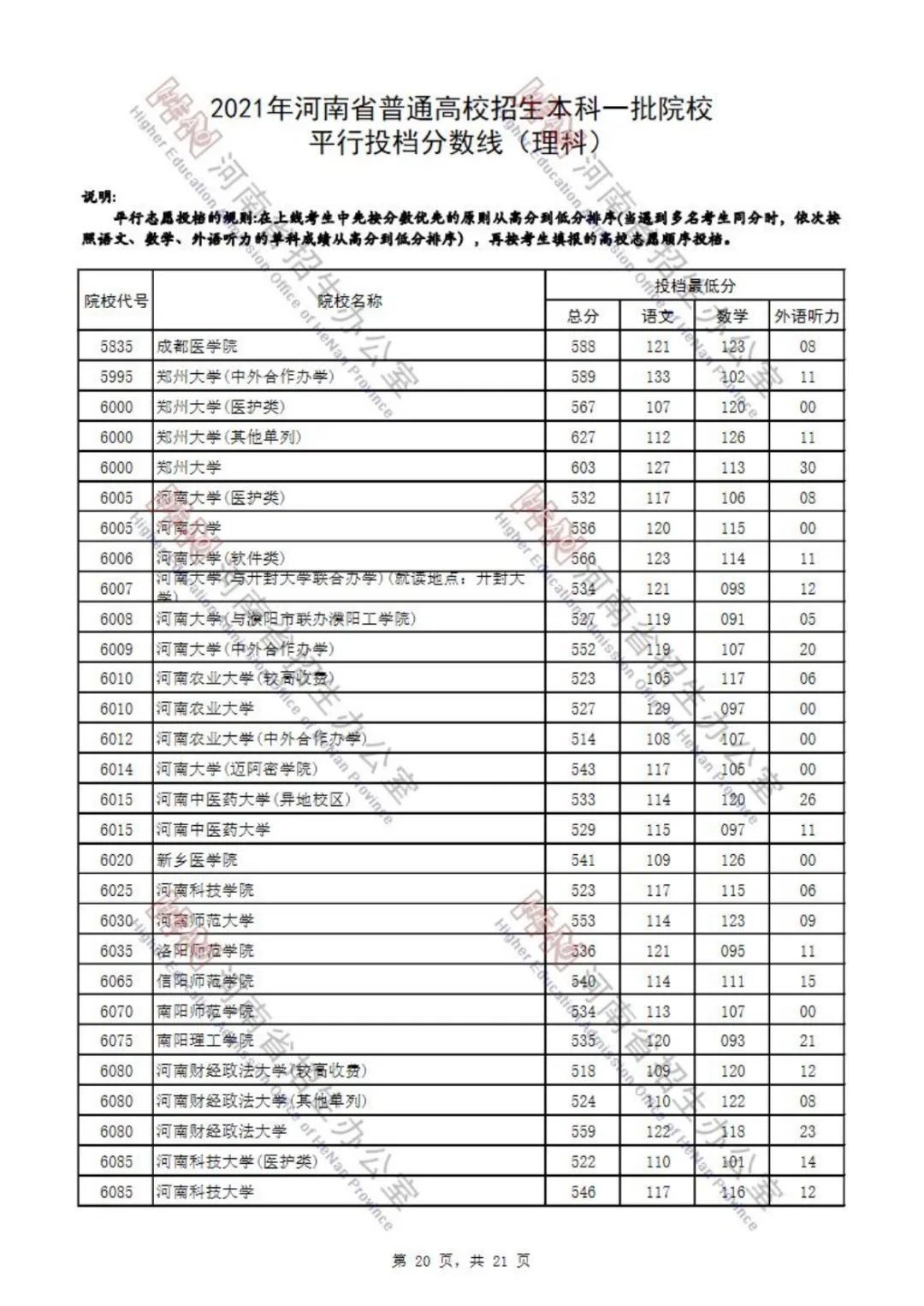 2021年河南省普通高招