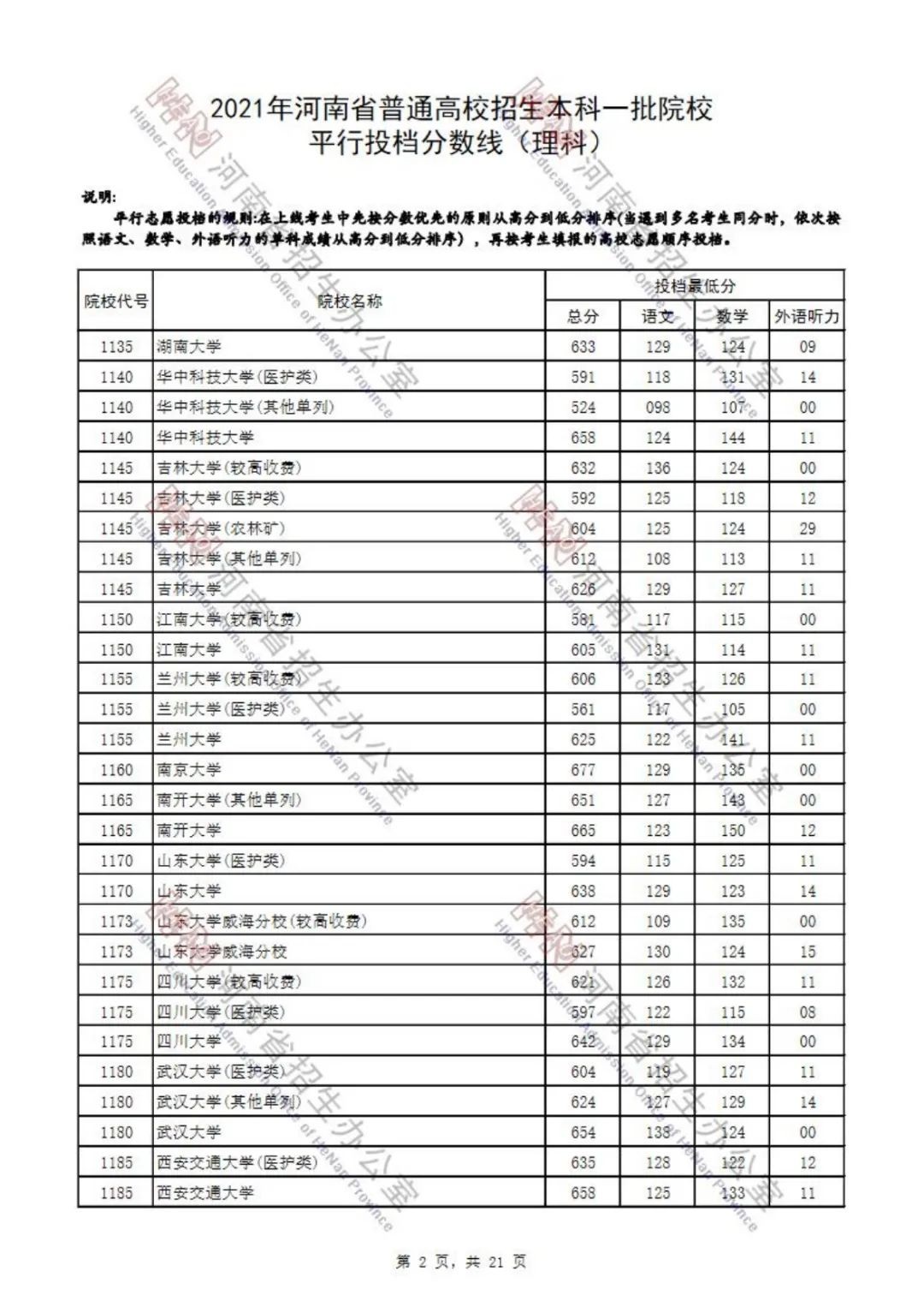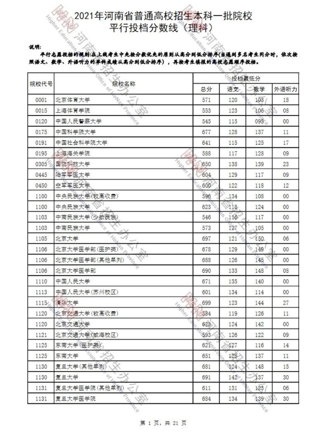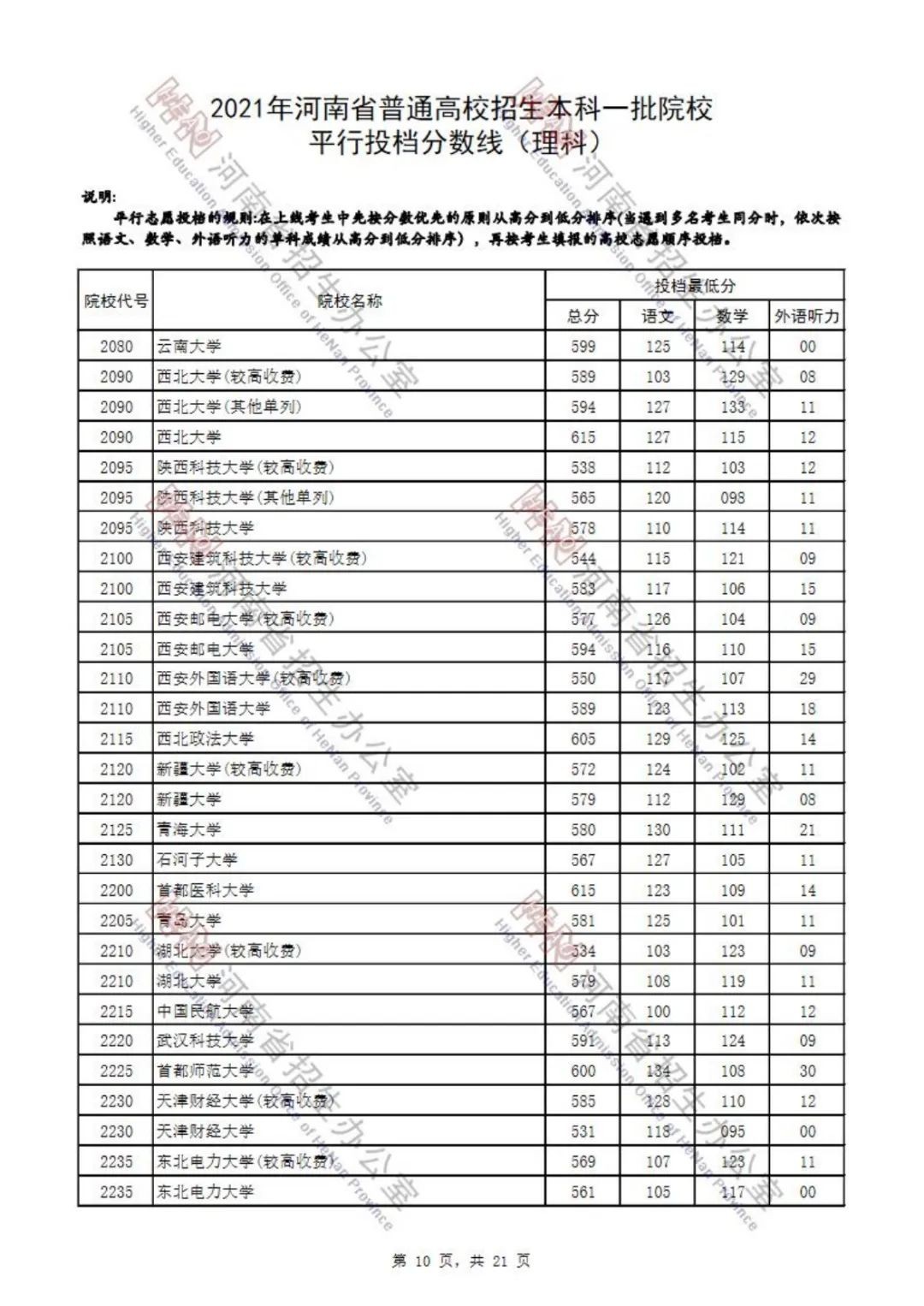2021年河南省普通高招