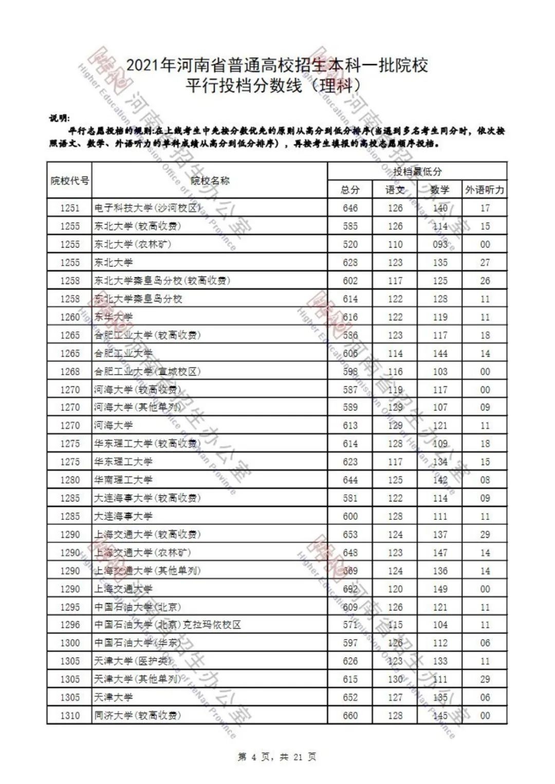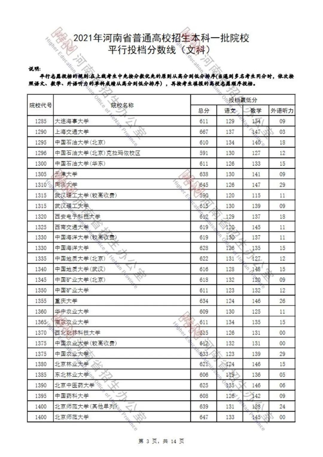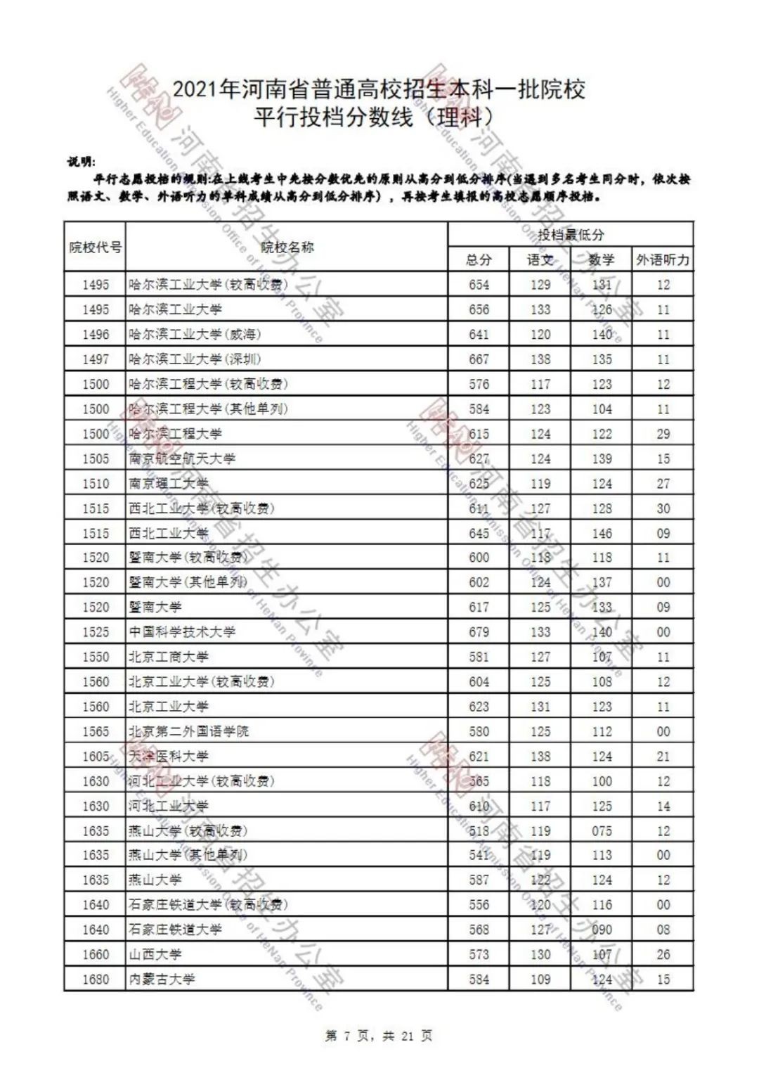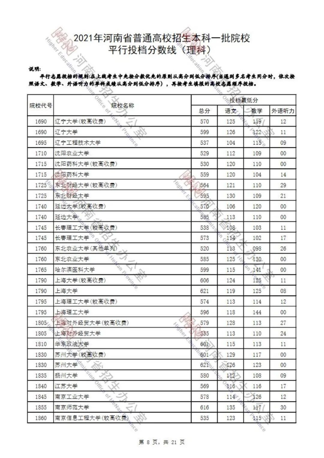 本科一批院校平行投档分数线也已出炉