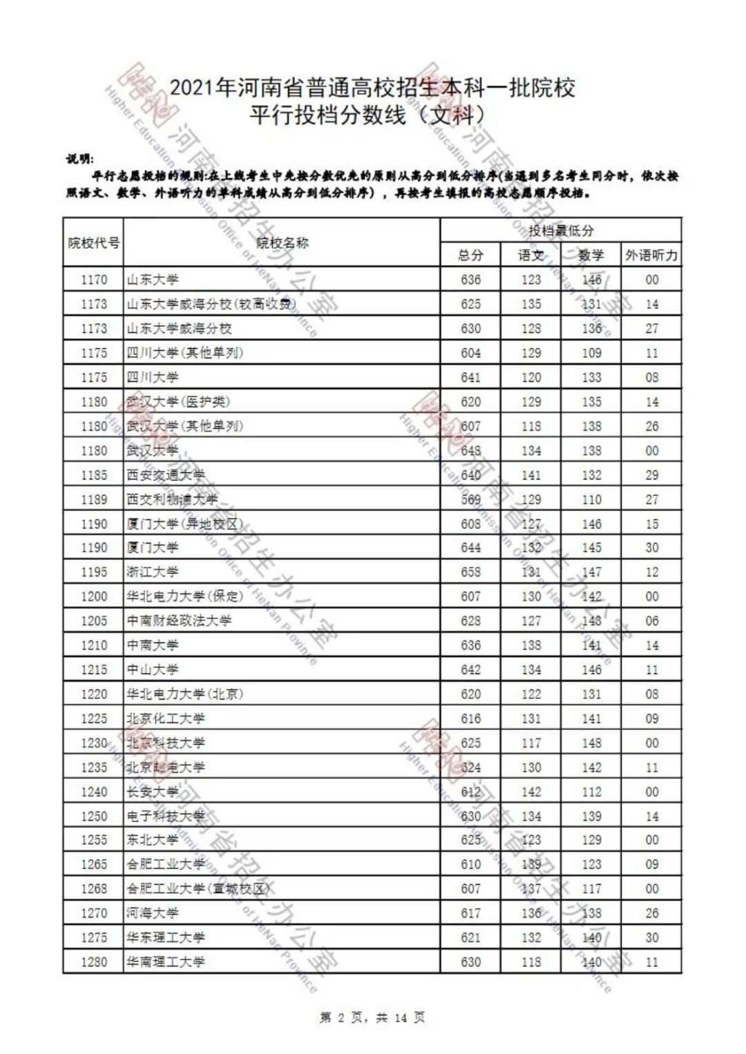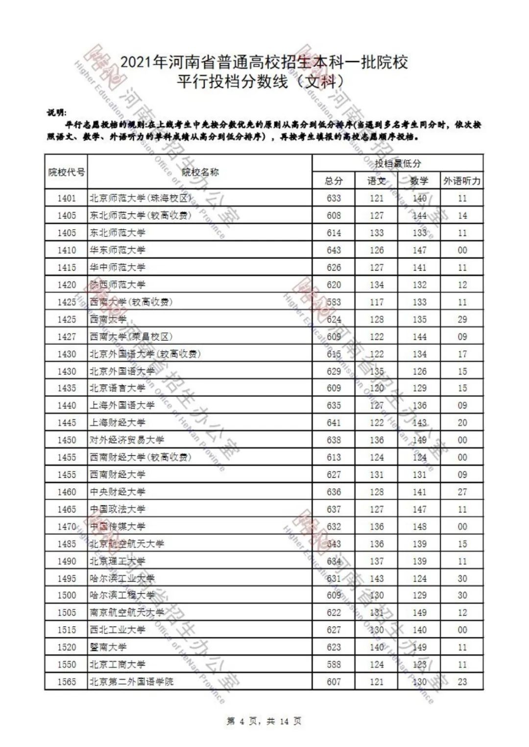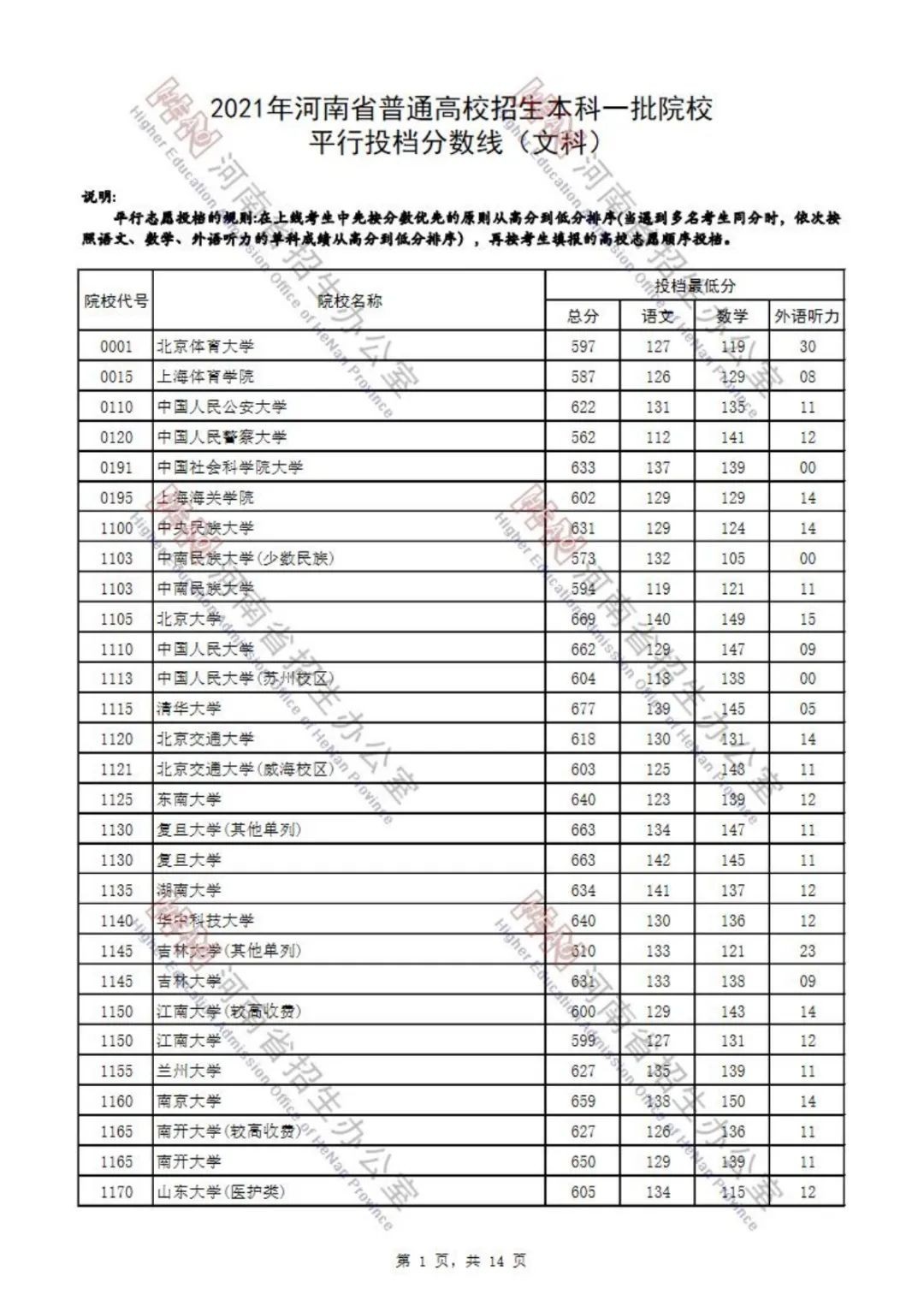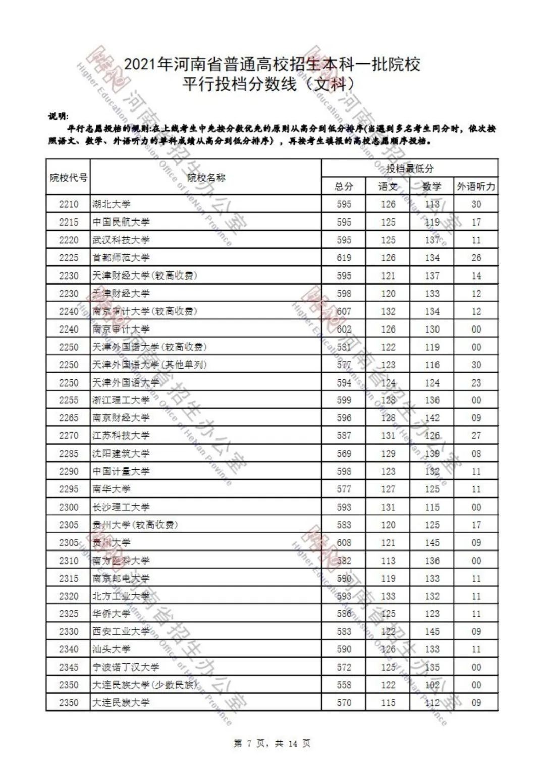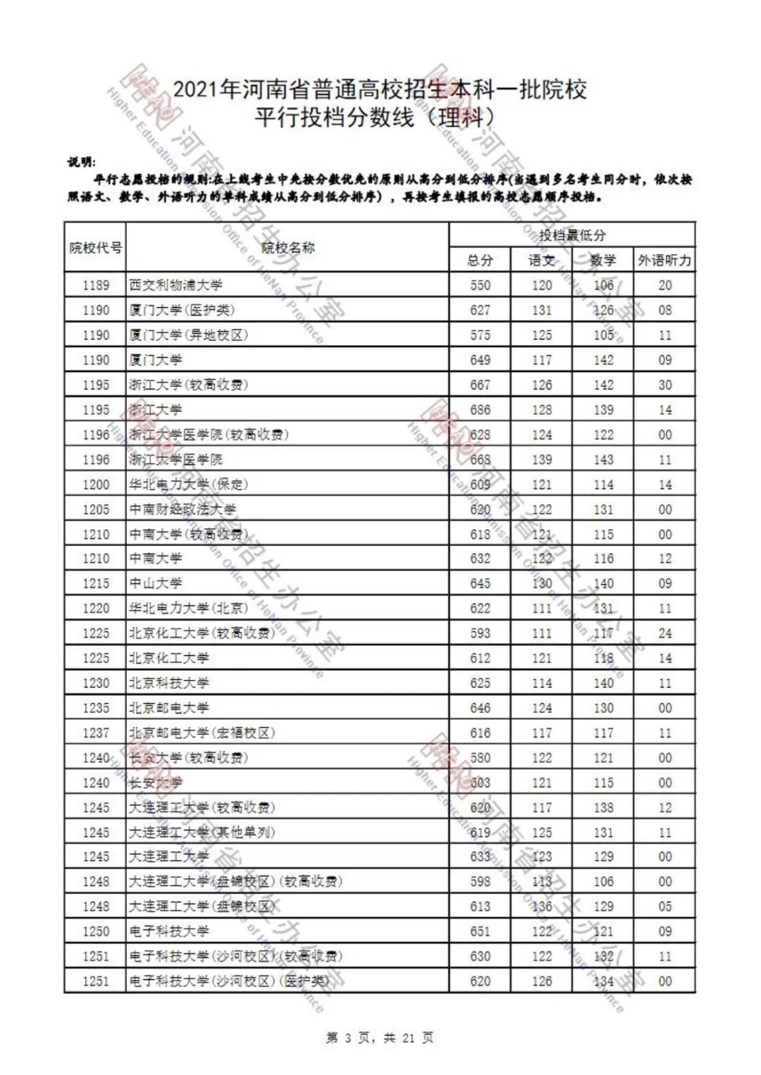 本科一批院校平行投档分数线也已出炉