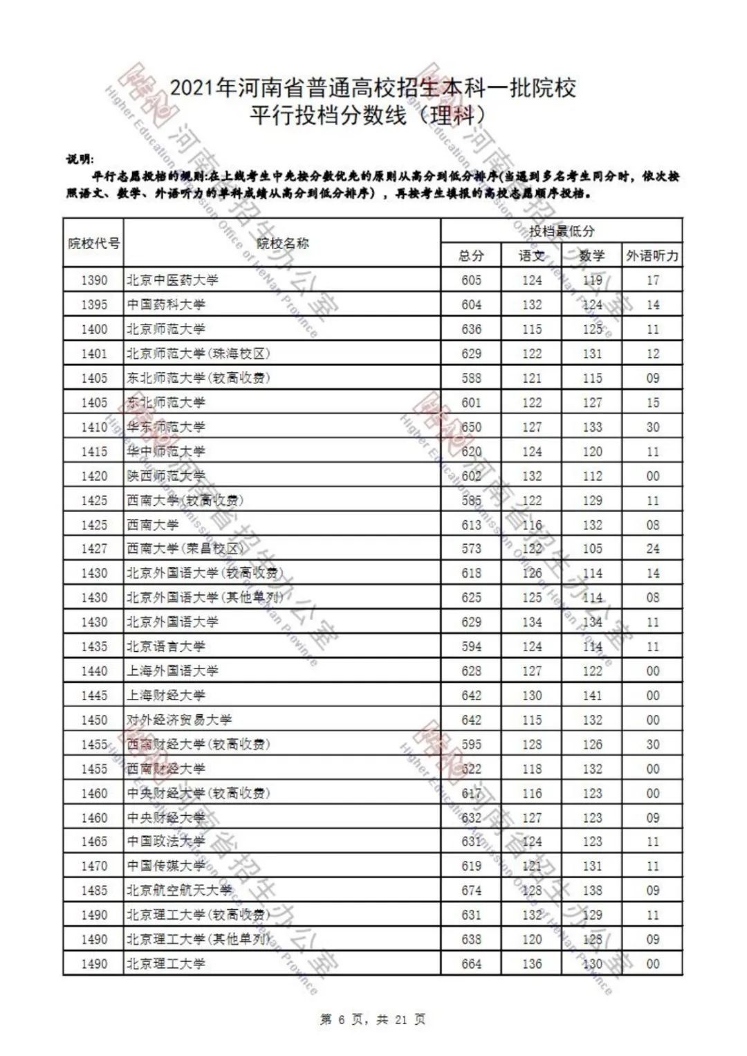 河南2021高招本科一批录取工作