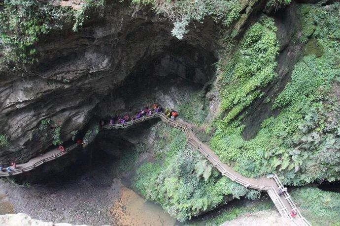 也就是从这个时候开始,武隆更加坚定了旅游发展的决心和步伐。2011年,武隆喀斯特旅游区成为国家5A级景区,这也是重庆的第三个5A级景区。在旅游发展的过程中,武隆把天坑地缝作为一块金字招牌,大张旗鼓对外宣传推广,武隆天坑地缝的名声越来越响亮,越来越多的人慕名而来。武隆也渐渐发展成为重庆旅游的一面旗帜,这几年,以天生三桥、仙女山、芙蓉洞组成的武隆喀斯特旅游区,年接待游客300万人以上,进入了国内自然景区的第一梯队。