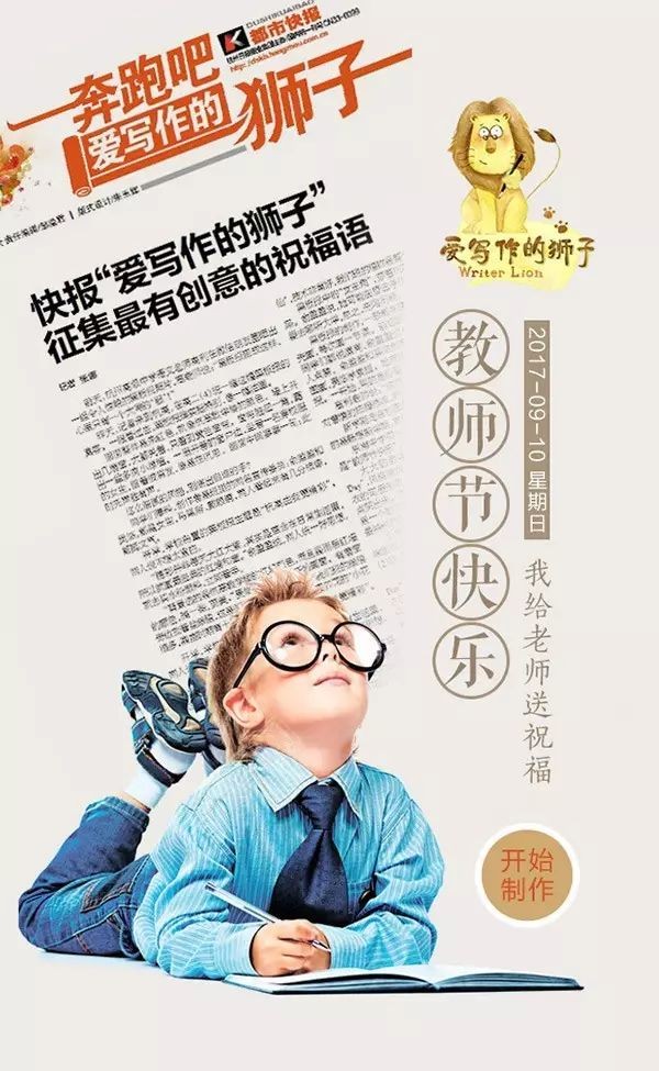 亲爱的老师,祝你节日快乐!快报“爱写作的狮子”请你为老师制作一张电子贺卡!