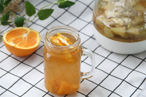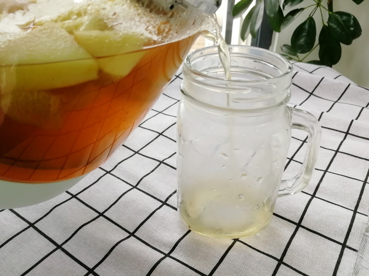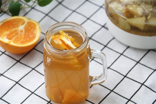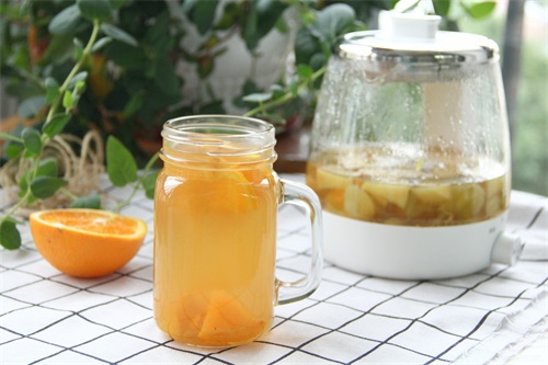 想要好看,还可以在杯子中切1-2片橙子片,更好看!微微放凉,喝起来酸酸甜甜,正合适!还想喝的话,可以继续加水煮一壶哦!