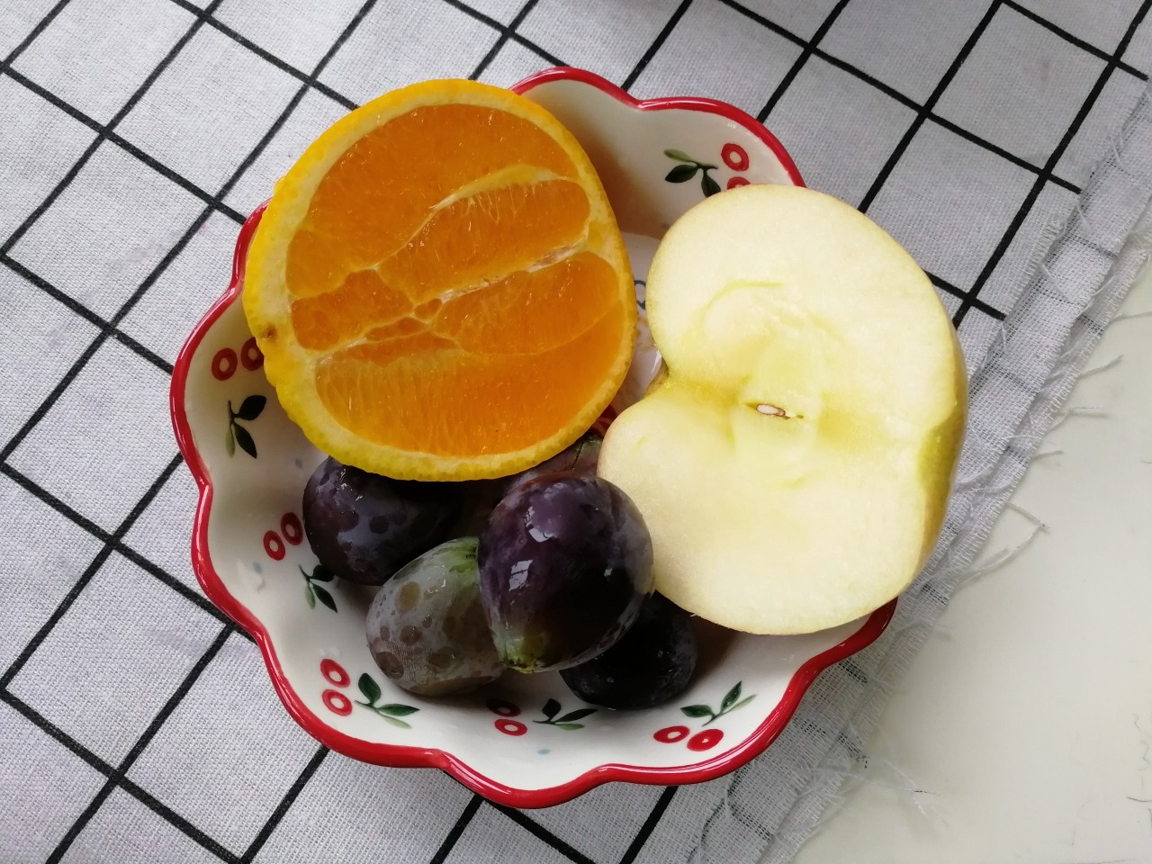 今天用的是苹果、橙子和葡萄。酸甜开胃,生津止渴,去去火气。