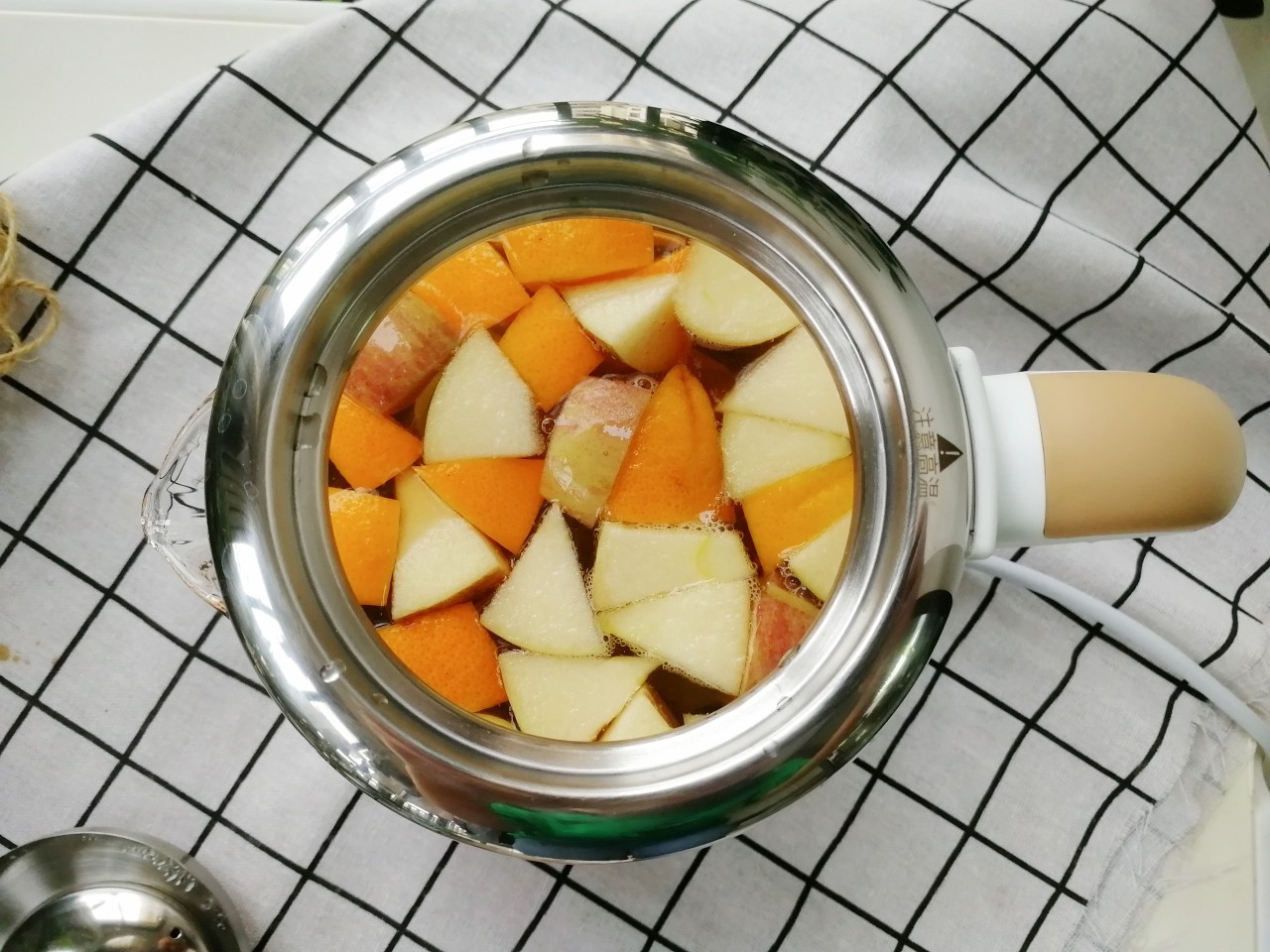 3、建议用纯净水煮哦!喜欢茶味浓的小伙伴可以将茶叶多煮一会再加水果煮!