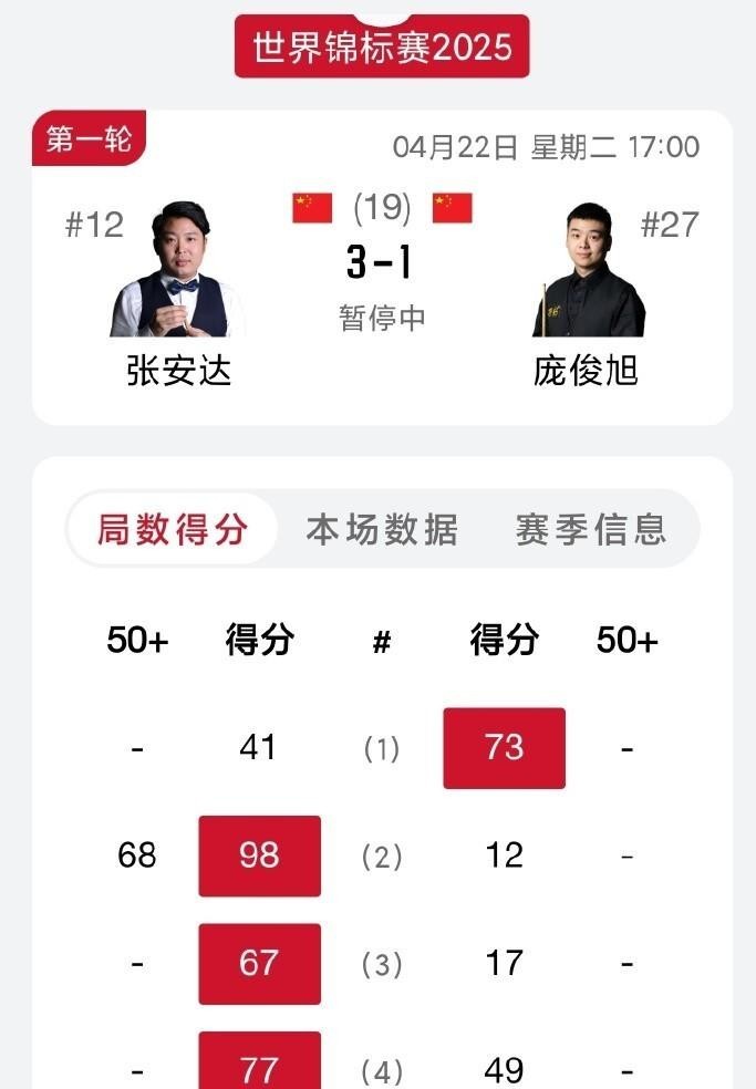 张安达手握两局优势,但庞俊旭三次追平比分展现的韧性不容小觑。