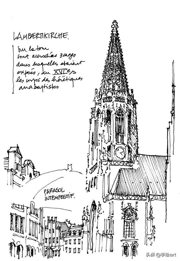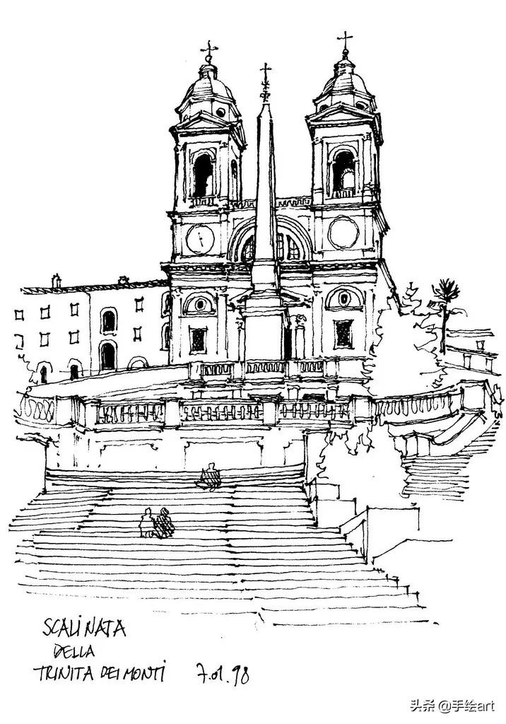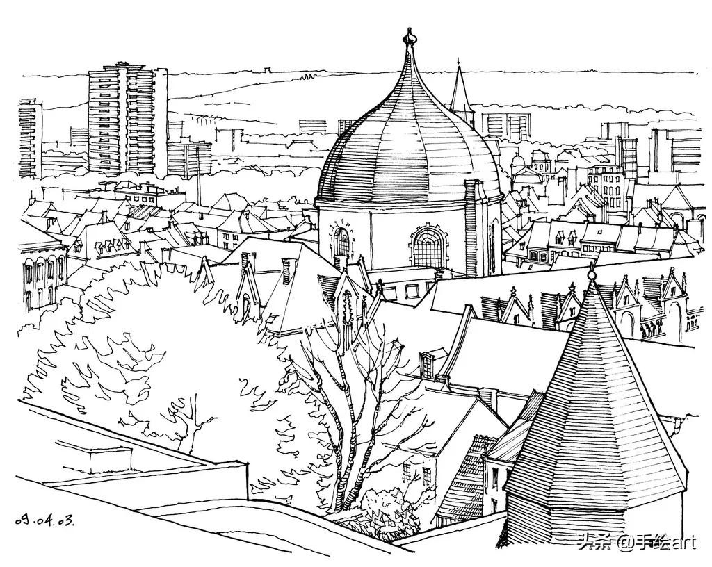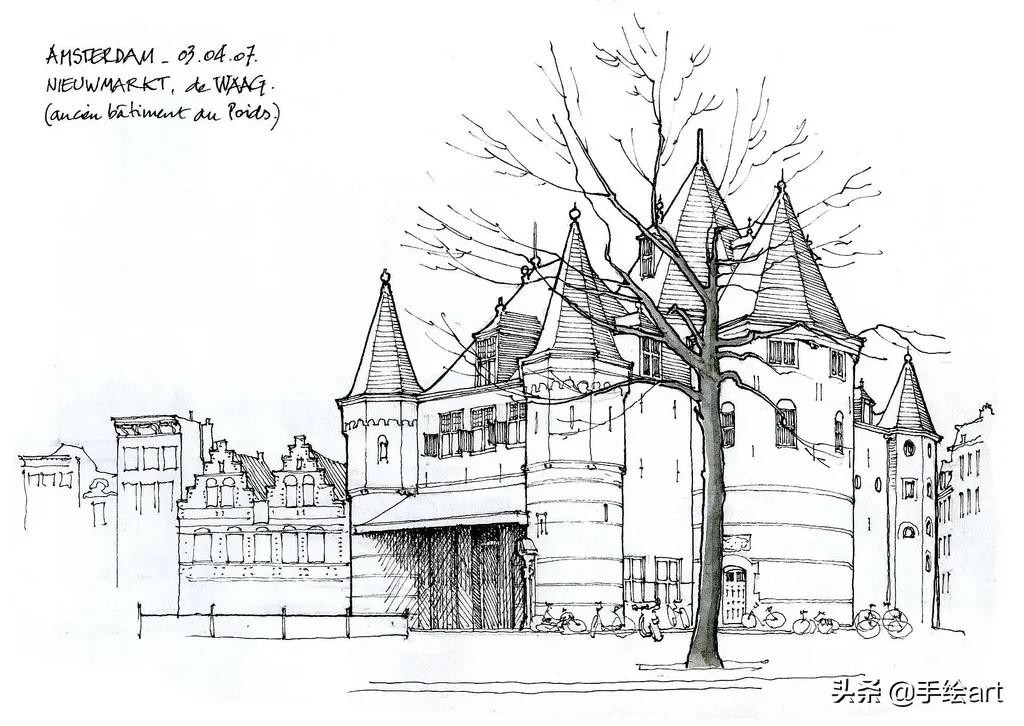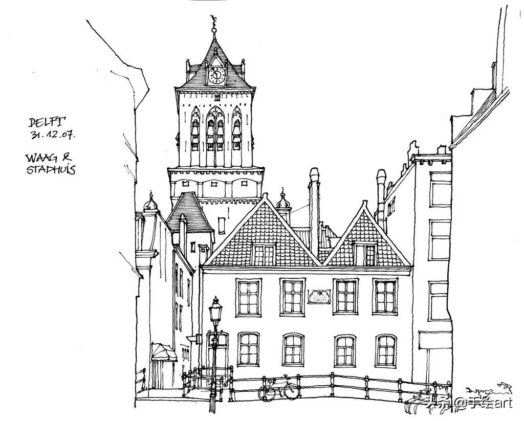 建筑速写的表达形式和风格有很多种,看你喜欢哪一种感觉,如果你也热爱那就坚持画起来,找到属于自己的感觉,这些都是很不错的速写作品。值得学习!