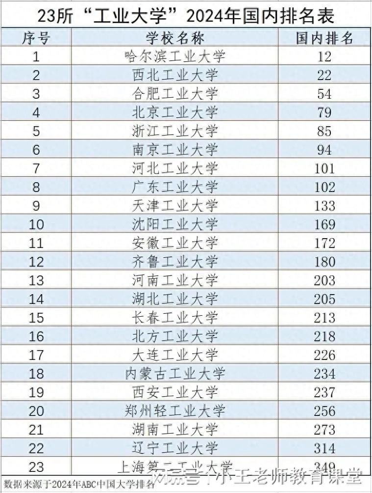 23所“工业大学”2024年国内排名新鲜出炉,哈工大荣登榜首