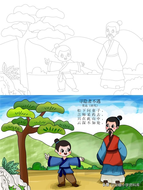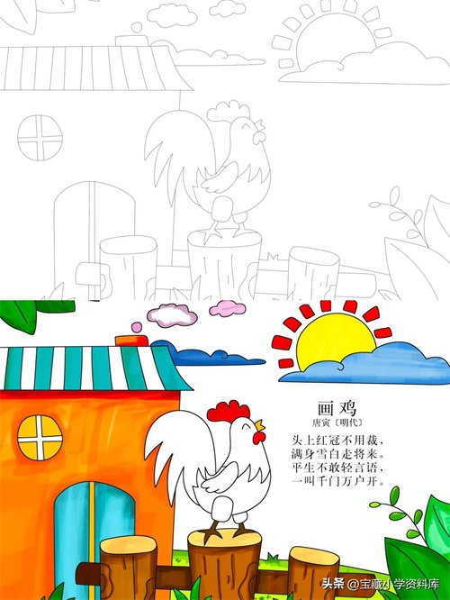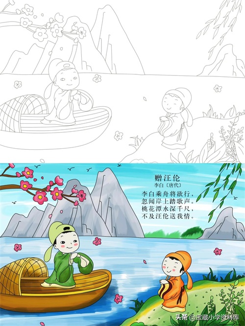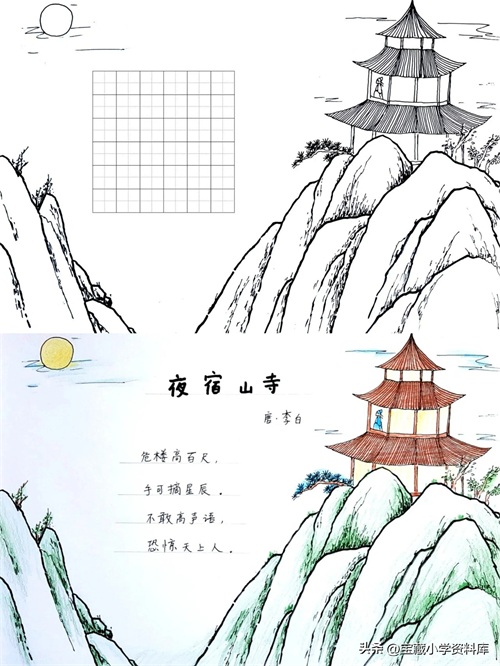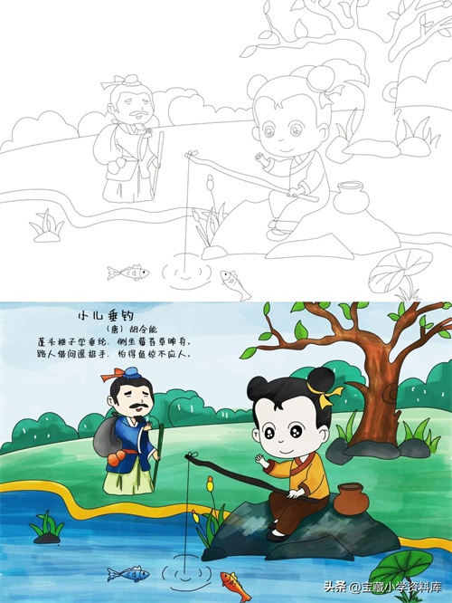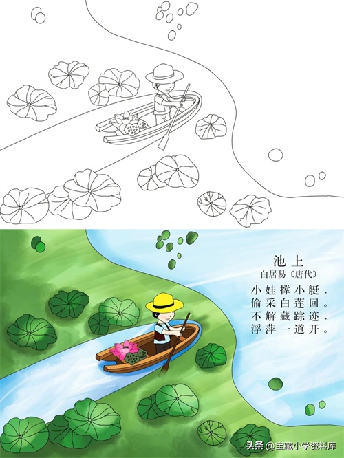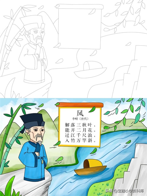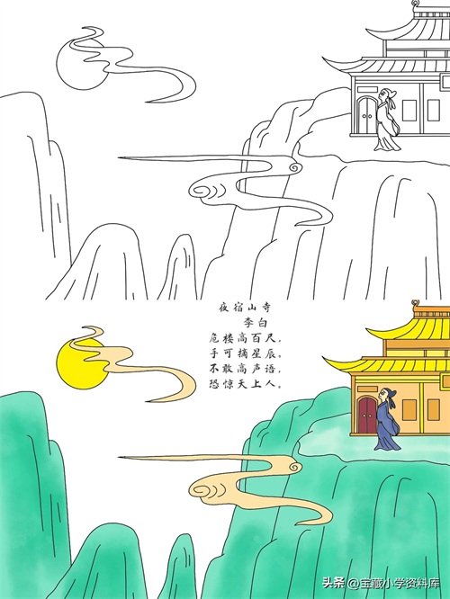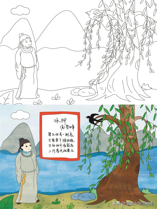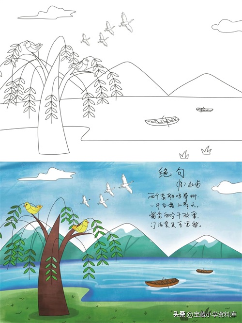 诗配画轻松搞定!可以直接打印出来让孩子涂色喔~还能加深孩子对诗歌的理解。
