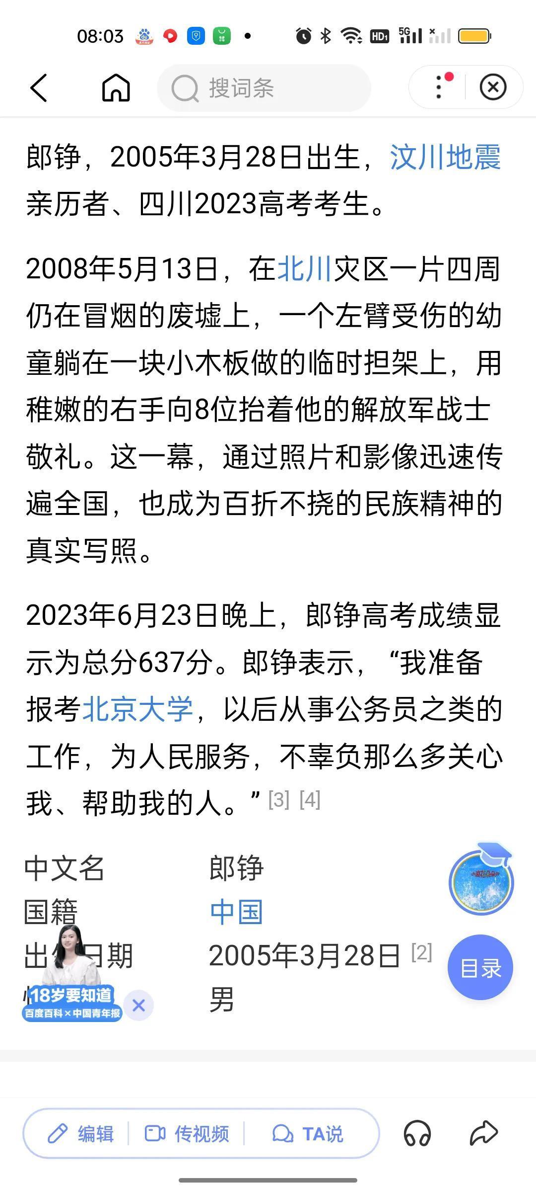 值得一提的是在今年众多高考生中有在2008年汶川大地震中幸存的四川绵阳的小男孩郎铮。