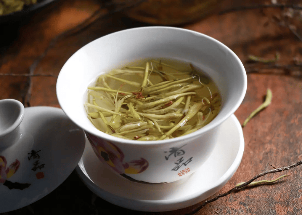 金银花茶也是生活中常见的一种花茶,它的茶胚选自优质绿茶,将新鲜的金银花经由窨制而成,采摘旺盛期就在炎热的夏季。