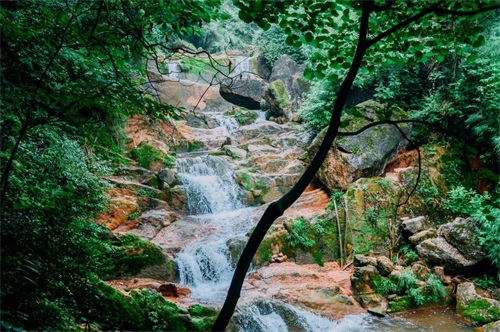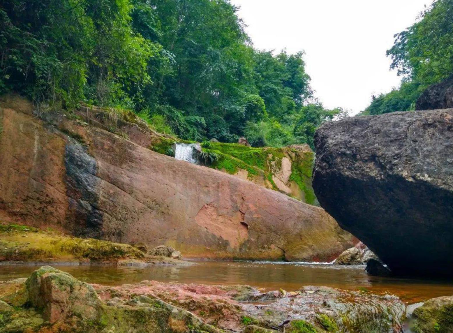 远处清澈的水潭,星罗棋布的分散在原始森林中,潺潺的流水,走到深处还能遇到悬挂的小瀑布,体验“小九寨”般的美景,仿佛走进宫崎骏的动画场景。清溪、峡谷、森林,这里完全是一个户外徒步、野餐好去处。不过菜菜提醒大家景区内没有厕所,进入口处有公共厕所,需大家自行安排好行程。