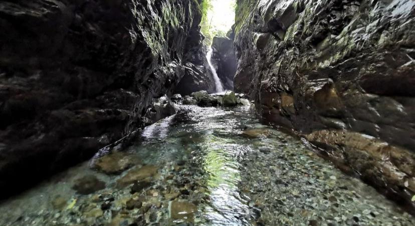 沿途一直走下去,几分钟就能看到瀑布,这里被山谷和树林包围起来的野生瀑布差不多大大小小有好多个,树上随处可见的蝉,溪水清澈但不凉的刺骨,刚好下午来这里可以摆张小桌,放上冰好的西瓜和果汁,坐在石边咬着西瓜吹着来自山间的凉风,超级舒服。