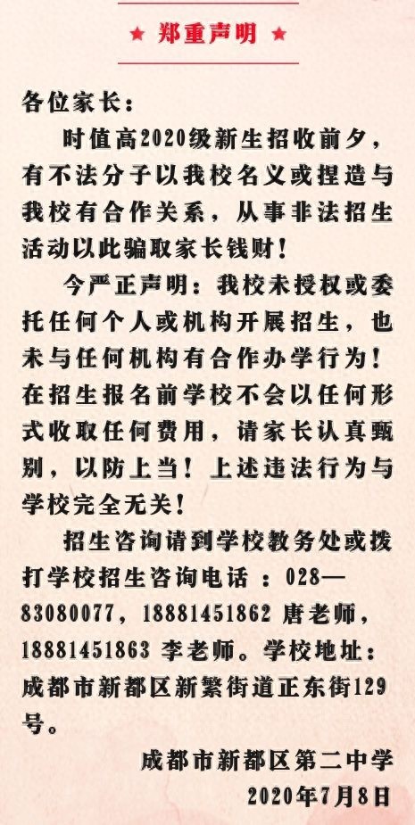 【新都二中】郑重声明