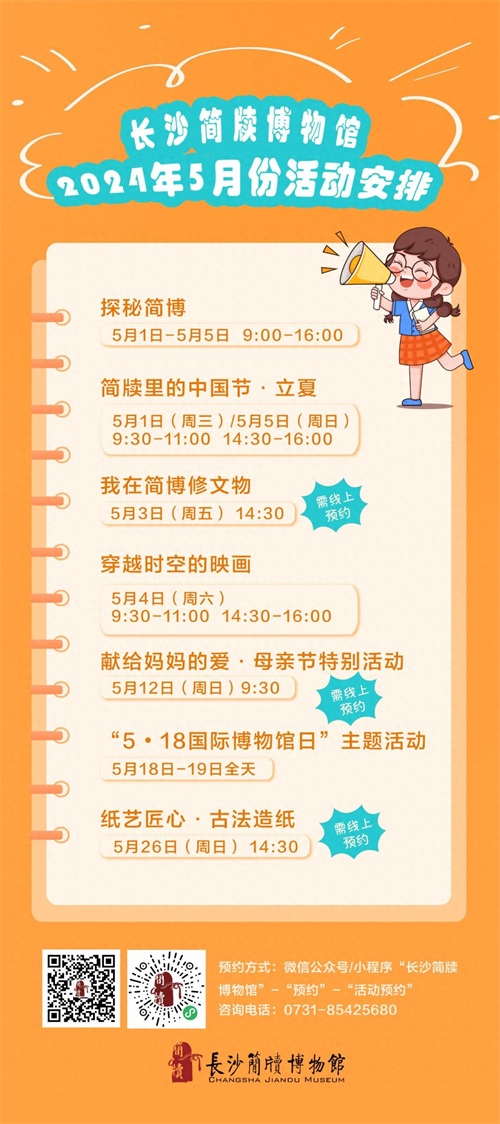 1、所有活动在微信公众号上报名,请关注长沙简牍博物馆微信公众号,报名时间一般为每周三上午10:00(个别场次除外),打开菜单栏“预约”,点击“活动预约”即可看到可报名场次;