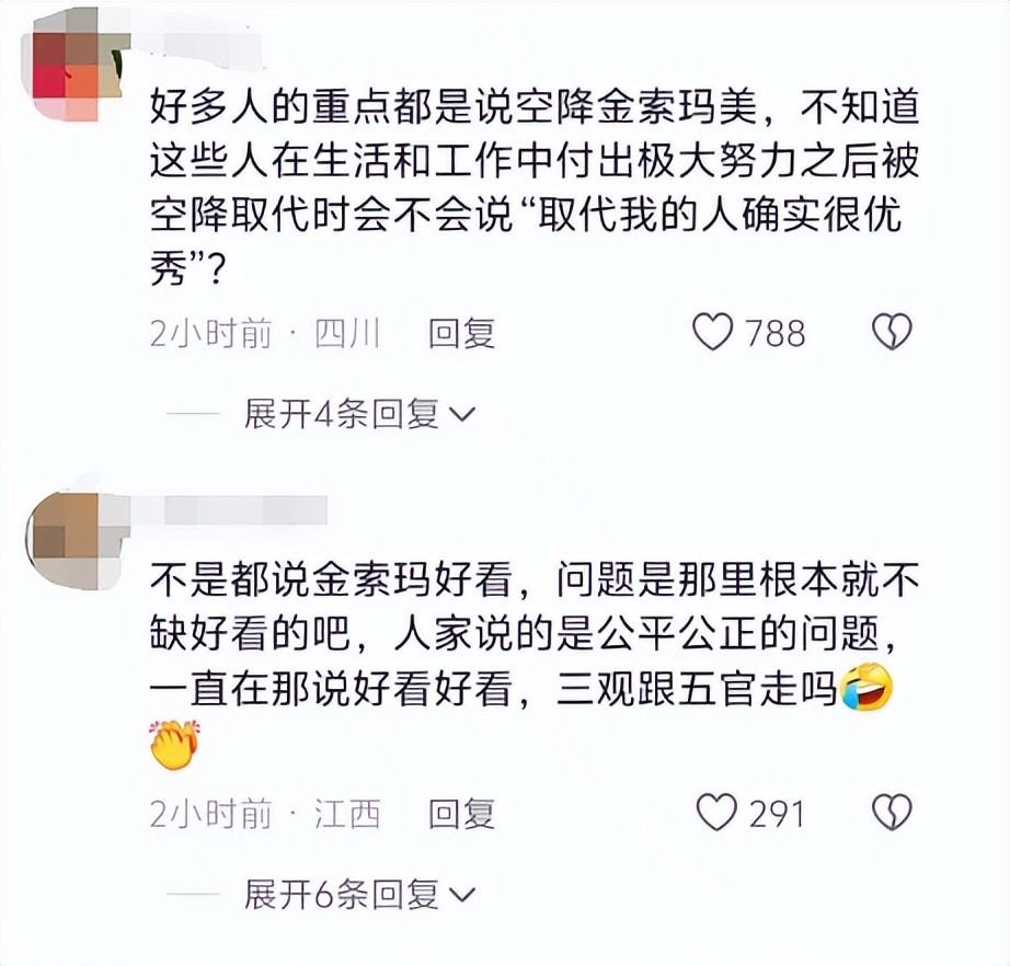 好多人的重点都是说空降金索玛美,不知道这些人在生活和工作中付出极大努力之后被空降取代时会不会说“取代我的人确实很优秀”?